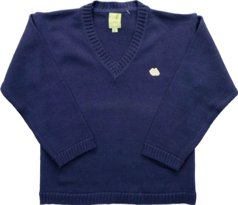 Pulover gola V de manga longa. Tecelagem em fio de algodão com dois fios, malha leve e confortável para meia estação.